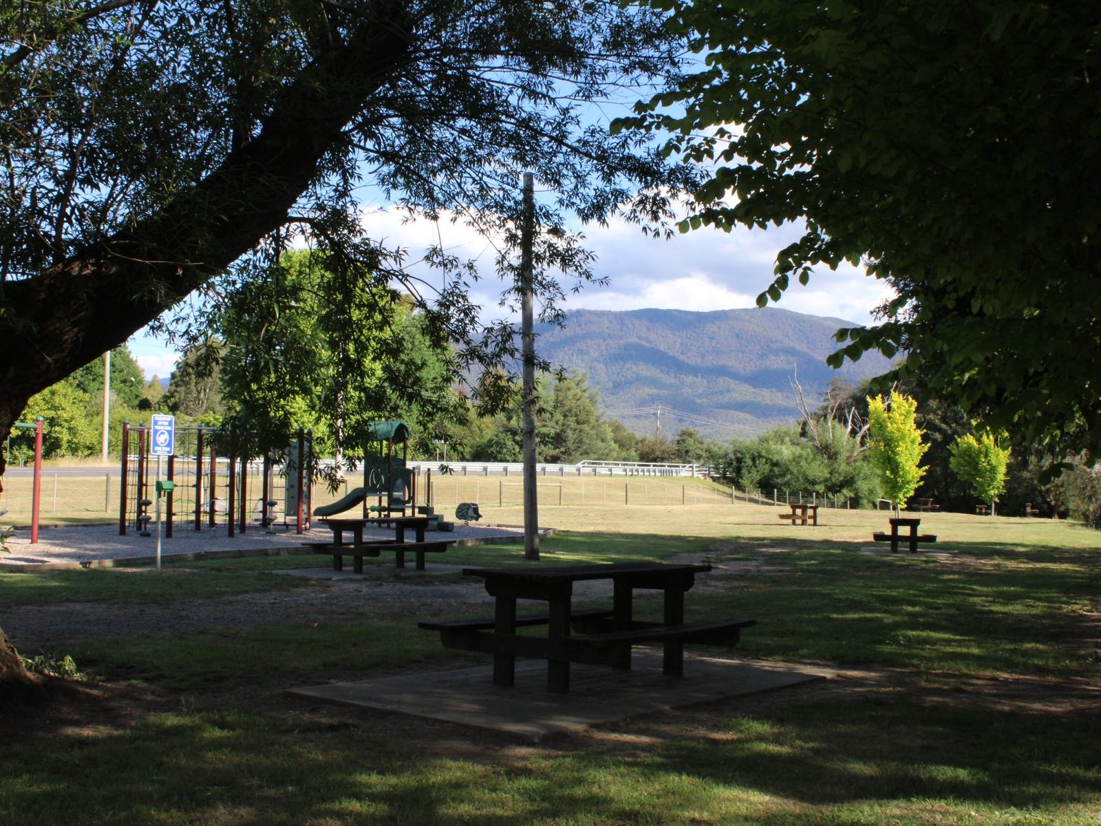 Located off Taggerty – Thornton Road, next to the Rubicon River bridge, is this picturesque reserve with public toilets, a playground, unsheltered picnic tables and benches looking overlooking the Rubicon River and the Rubicon State Forest in the distance.